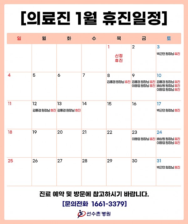 2026년 1월 의료진 휴진 일정 안내입니다.